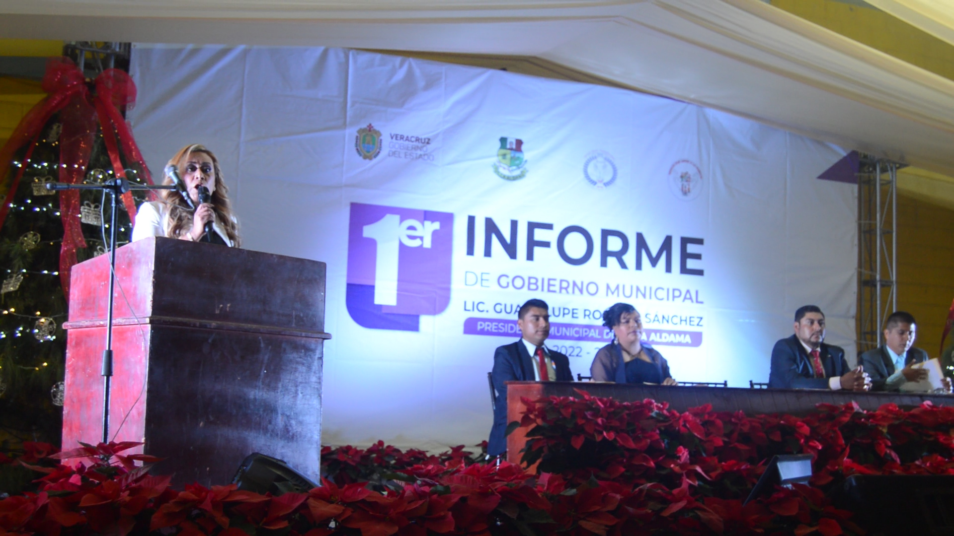 “Vengo con la frente en alto y orgullosa de representar un equipo que ha trabajado arduamente durante once meses con el objetivo de ofrecer bienestar a la ciudadanía. Además contar con un Cabildo que lucha de forma incansable por el desarrollo local y en aras de mejorar la calidad de vida de los habitantes de Villa Aldama” así inició el Primer Informe de Gestión la presidenta municipal Guadalupe Romero Sánchez.